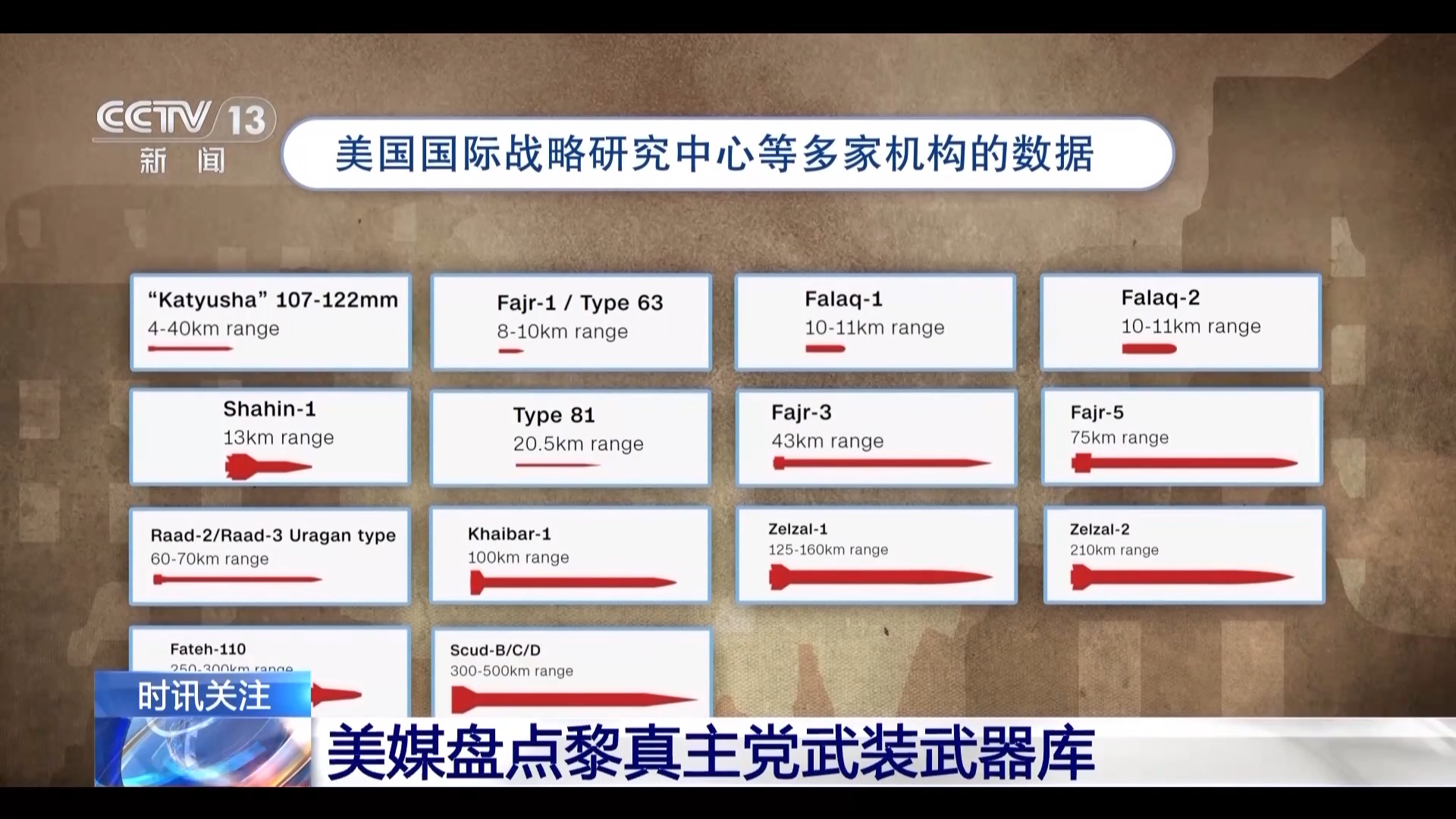 文章援引美国国际战略研究中心等多家机构的数据报道称,黎真主党拥有约12万至20万枚火箭弹和导弹,种类繁多,射程不一。其中既有射程在4到40公里的“喀秋莎”火箭弹,也有射程在300到500公里的“飞毛腿”导弹。其中“飞毛腿”导弹可打至以色列最南端,覆盖以色列全境。当然,前提是要绕过以色列的“铁穹”防空系统。除了火箭弹和导弹,黎真主党还拥有多种型号无人机、便携式防空系统和地空导弹系统。