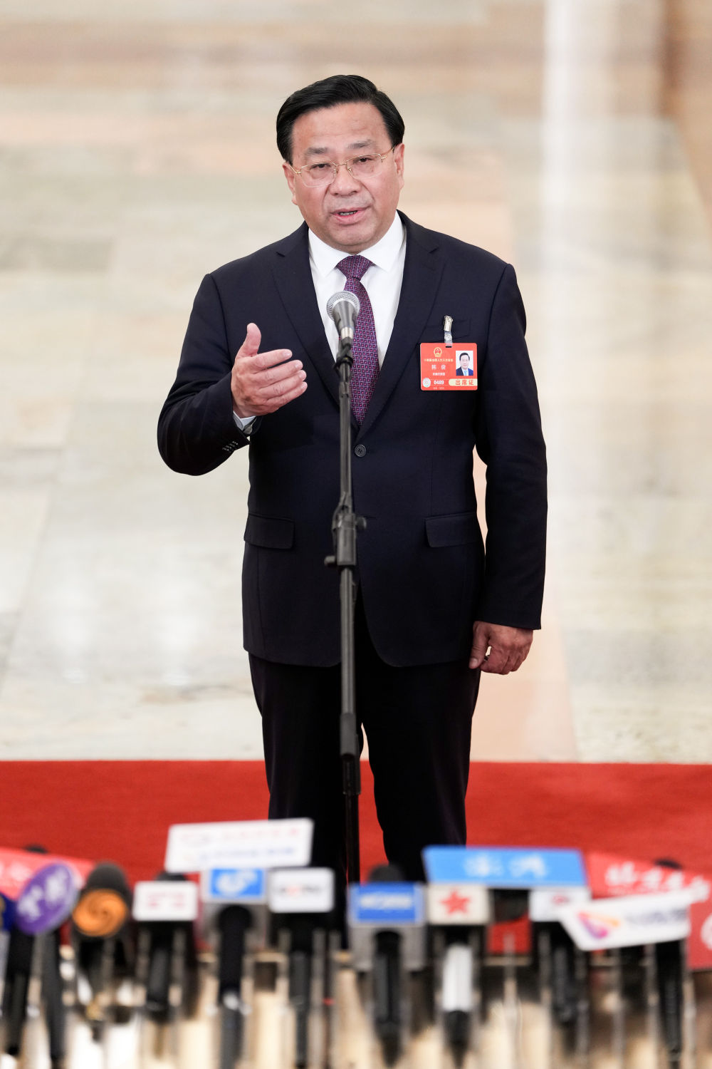 这是水利部部长李国英接受媒体采访。新华社记者 胥冰洁 摄