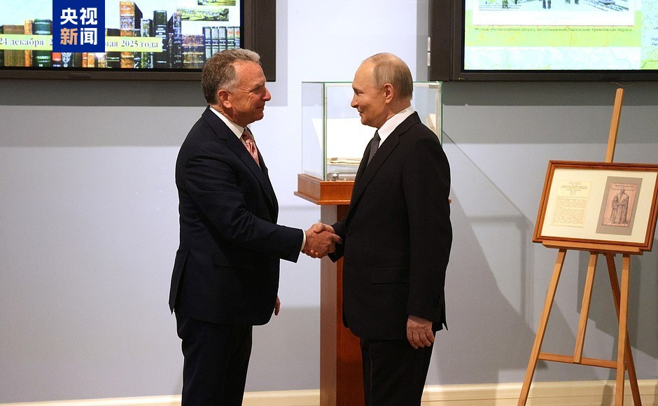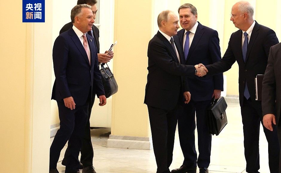 俄总统网站的图片显示,俄总统助理乌沙科夫和直接投资基金总裁德米特里耶夫在场。(总台记者 程谟 王德禄)