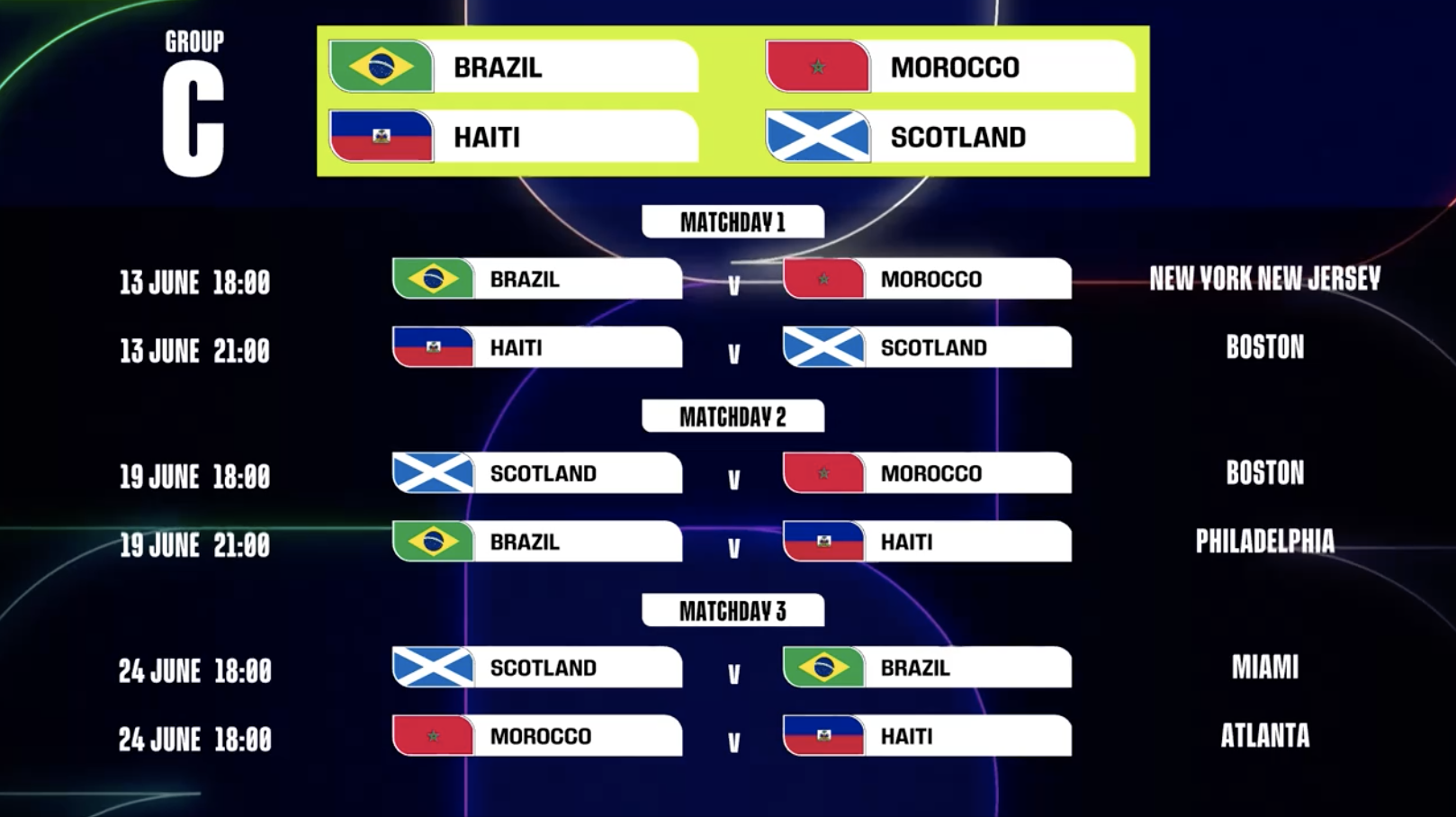 第1轮 海地vs苏格兰:6月13日,21:00,波士顿