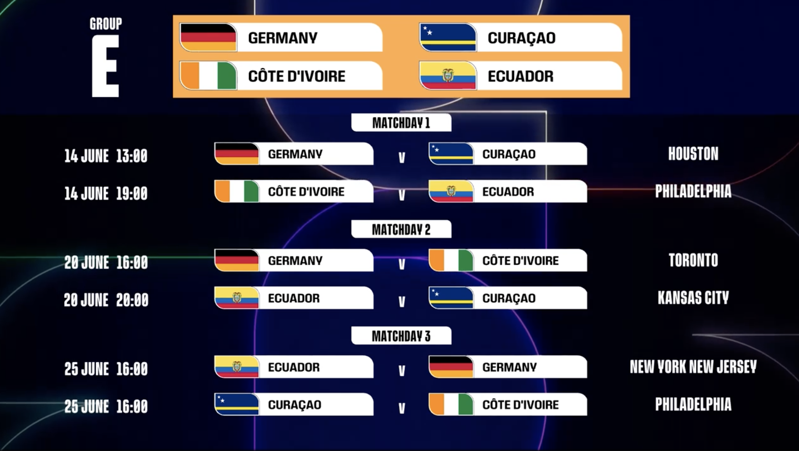 第1轮 德国vs库拉索:6月14日,13:00,休斯敦