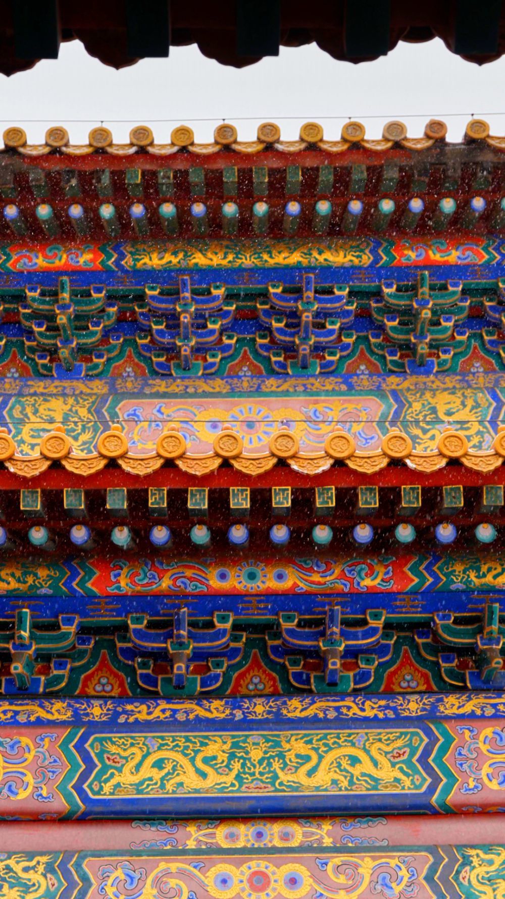 飞雪映朱墙,古城换银装。12日,故宫博物院迎瑞雪!