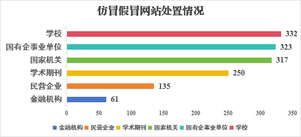 1.仿冒人社部、国家税务总局等国家机关网站317个。冒用国家机关名义,发布虚假“综合工薪补贴”、“退税通知”等,诱导网民输入身份证号码、银行卡号码等个人隐私信息,导致信息泄露。