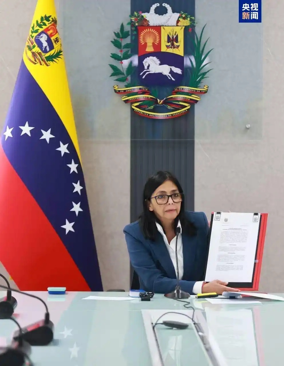 罗德里格斯在全国代表大会主席、内政部长、外交部长和国防部长等官员陪同下发表直播讲话。她要求美国释放其“绑架”的马杜罗夫妇,呼吁委内瑞拉人民保持冷静,共同面对挑战,捍卫国家主权。