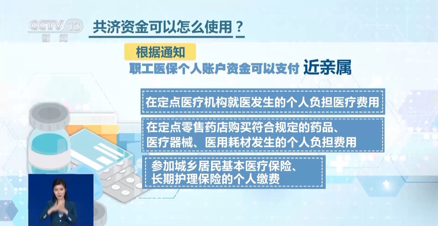 共济资金可以怎么使用?根据通知,职工医保个人账户资金可以支付近亲属在定点医疗机构就医发生的个人负担医疗费用,在定点零售药店购买符合规定的药品、医疗器械、医用耗材发生的个人负担费用,以及参加城乡居民基本医疗保险、长期护理保险的个人缴费。
