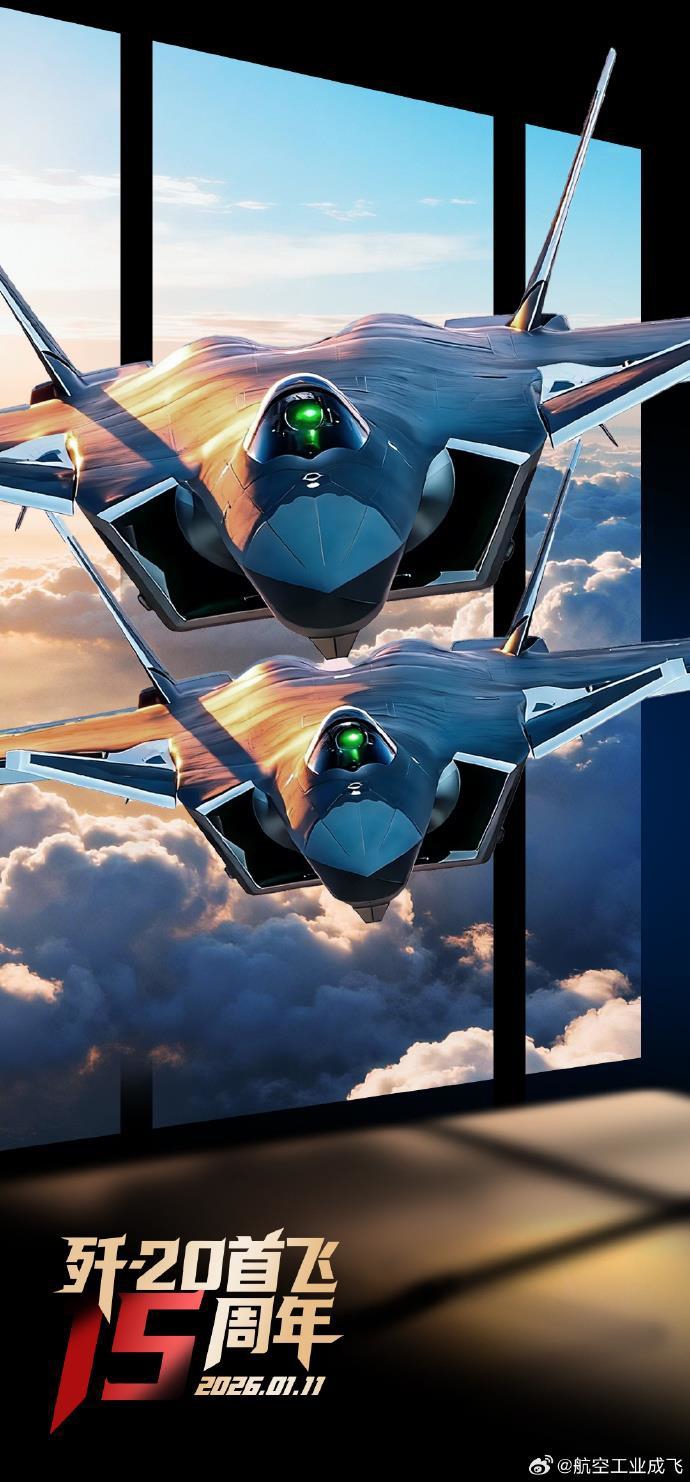 2011年1月11日下午1时11分,一架线条刚毅、神秘科幻的战机,在众人期待的目光下完成首飞,稳稳降落跑道,如惊雷般震撼世界,被网友们亲切称为“黑丝带”“银河战舰”。十五年风云淬炼,歼-20早已从惊鸿一瞥的“明星战机”成长为守护蓝天的“中坚力量”。送上一组歼-20裸眼3D“硬核”海报,体验“威龙”一如既往的震撼!