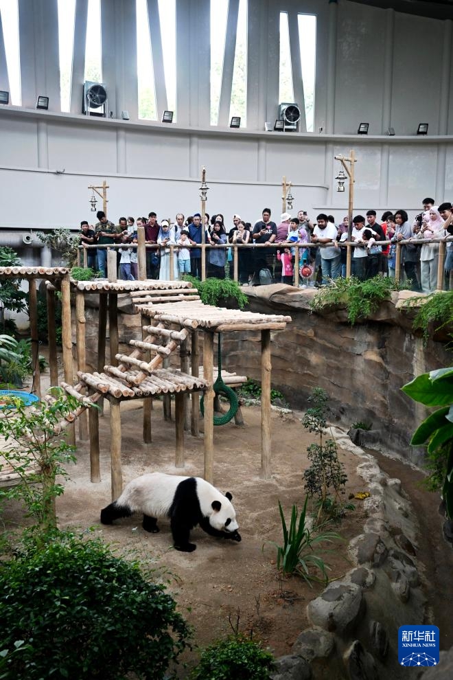 1月10日,人们在马来西亚吉隆坡附近的马来西亚国家动物园观看大熊猫“辰星”。新华社记者 程一恒 摄