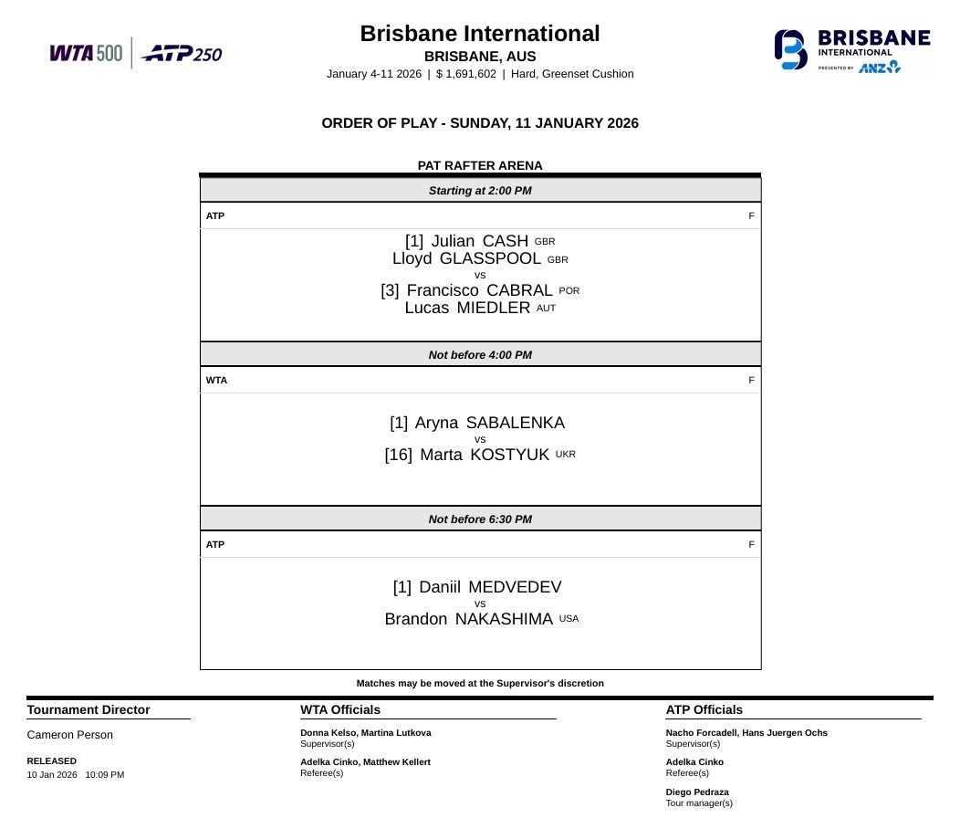 不早于14:00 萨巴伦卡 vs 科斯秋克