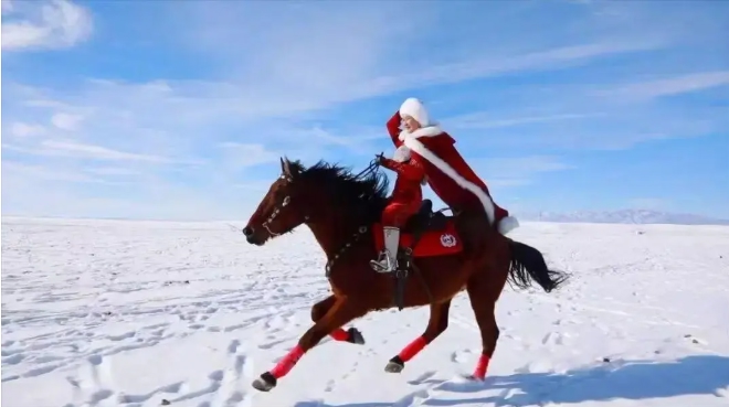 贺娇龙因马成名。2017年担任昭苏县副县长后,她以雪地扬鞭策马,宣传旅游的短视频“出圈”。对外发布的视频中,贺娇龙就像一位武侠剧中的女侠,英姿飒爽,为新疆冬季旅游代言。
