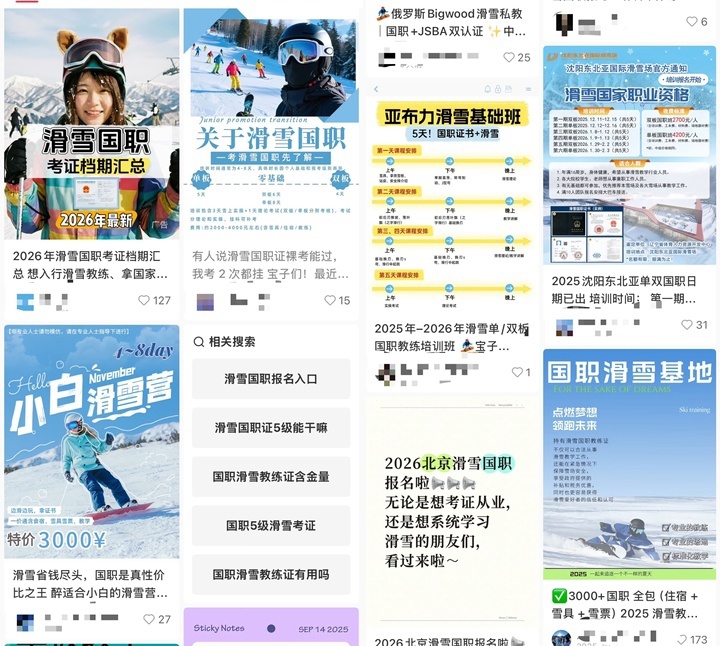 社交媒体平台上宣传的“滑雪教练国职证”培训班