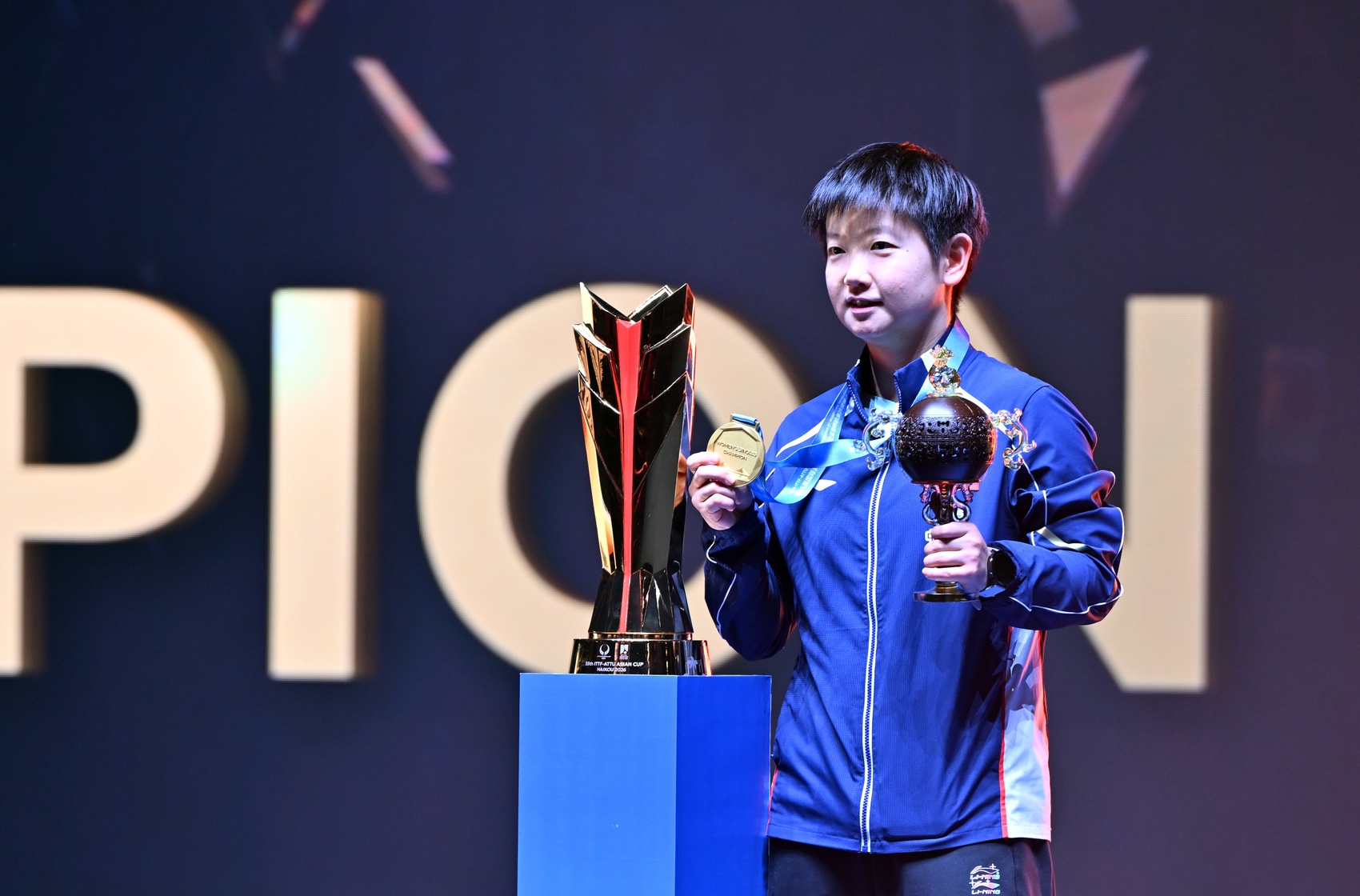 在海口举行的第35届国际乒联-亚乒联盟亚洲杯8日落幕,孙颖莎4:3战胜王曼昱,夺得个人首个亚洲杯女单冠军。王楚钦4:2击败日本队的张本智和,实现亚洲杯男单两连冠。