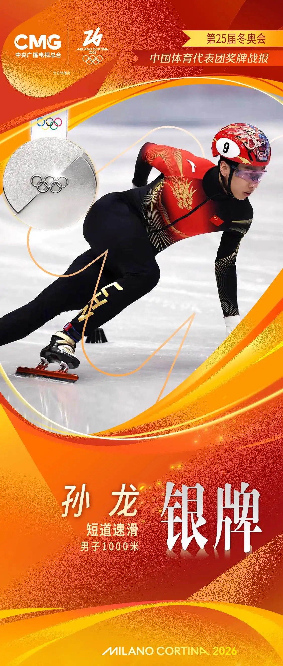 孙龙夺得米兰冬奥会短道速滑男子1000米决赛银牌