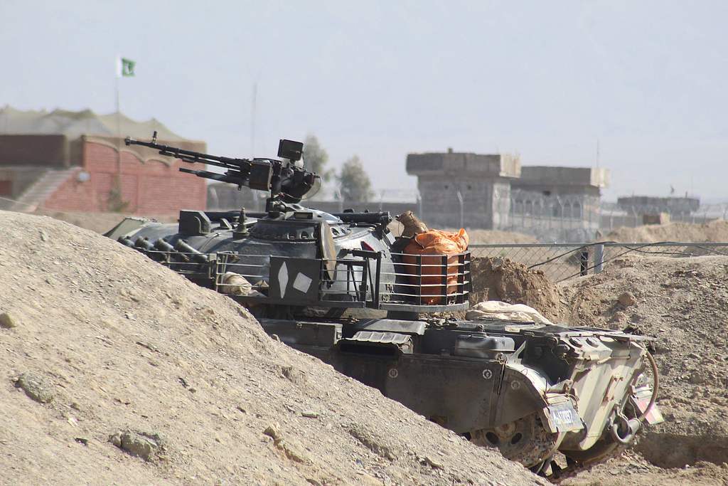 △当地时间3月4日,一辆巴基斯坦陆军坦克停在巴阿边境。