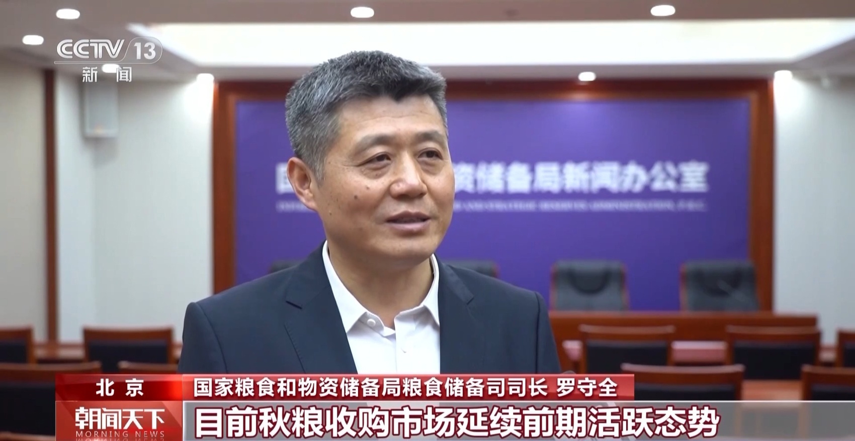 国家粮食和物资储备局粮食储备司司长 罗守全:目前秋粮收购市场延续前期活跃态势,粮食贸易、加工和储备企业等各类主体积极入市收购,主要品种价格稳中有升,特别是高品质稻谷、玉米和高蛋白大豆需求旺、价格高。