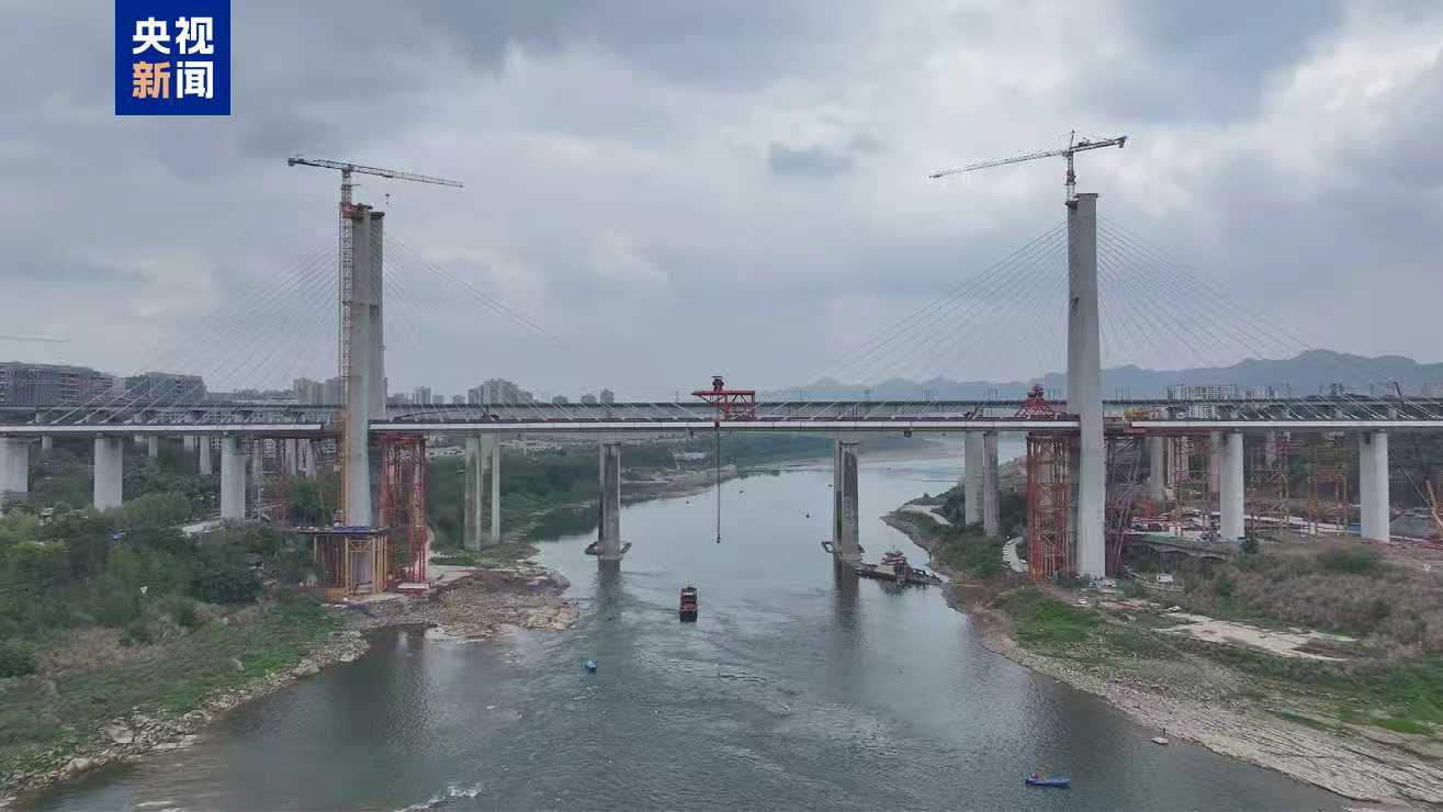 记者从中国铁路成都局集团获悉,3月31日10时许,随着最后一节钢箱合龙段焊缝焊接完成,新建成渝中线高铁成都至重庆高速铁路(以下简称:成渝中线高铁)全线控制性工程—井口嘉陵江特大桥顺利合龙,标志着成渝中线高铁全线桥梁全部合龙,为全线按期通车奠定了坚实基础。
