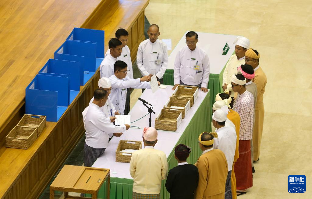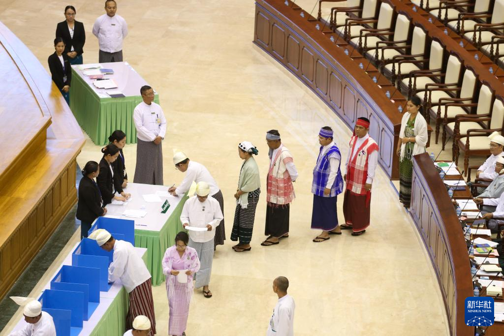 3月31日,在缅甸内比都,缅甸联邦议会人民院民选议员团成员在会议上投票选举副总统。新华社发(苗觉梭摄)