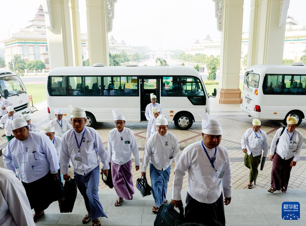 3月31日,缅甸联邦议会民族院民选议员团成员在内比都出席会议。新华社发(苗觉梭摄)