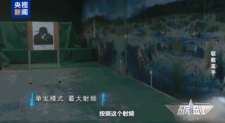 记者 庄晓莹:在它枪身的位置有一个电子显示屏,那么这个屏幕上在实际射击过程当中能够显示电量、剩余的弹药数量以及模式等信息,便于射手了解情况。
