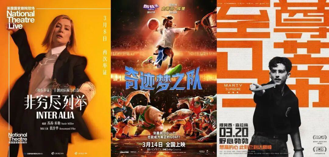 3月20日与北美同步上映的科幻电影《挽救计划》讲述太阳面临危机,一名宇航员在浩瀚宇宙中与外星伙伴携手拯救地球的故事。动画电影《河狸变身计划》以新颖设定吸引关注,影片讲述了一个人类女孩将自己的意识注入一只机器河狸体内,从而潜入动物社群内部,以人类视角展开充满意外与温情的冒险。此外,《非穷尽列举》《至尊马蒂》《奇迹梦之队》等影片同样备受关注。
