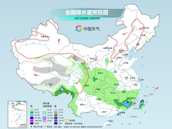 未来三天(4月7日至9日),南方仍将处于多雨模式,今夜起强降雨区域将转移至长江中下游地区,局地有暴雨或大暴雨,公众需关注预警预报信息,出行注意交通安全。随着雨区北抬,华南地区炎热将升级,多地或现高温天气,需注意防暑。