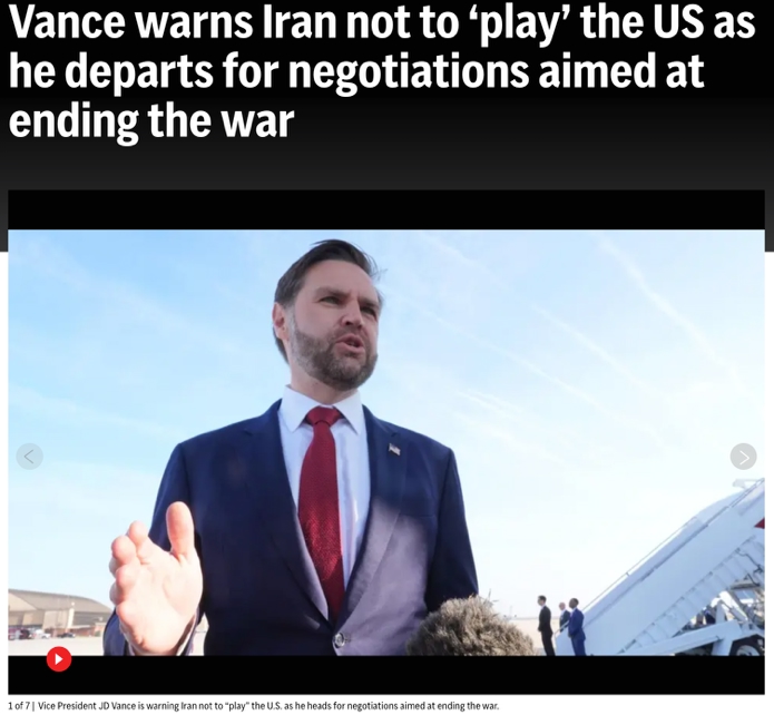 △美联社报道,美国副总统万斯警告伊朗不要“戏弄”美国,随后启程前往参加谈判。