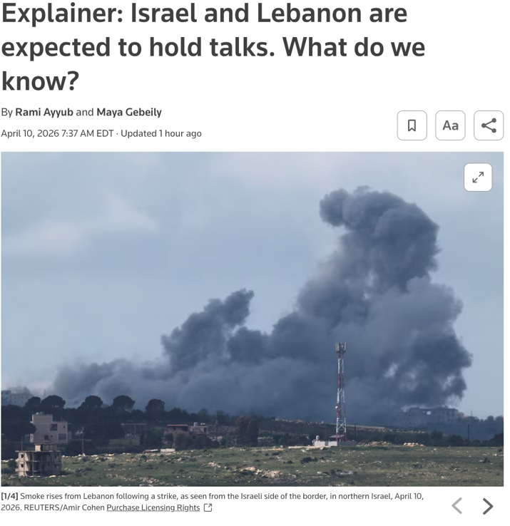 路透社4月10日报道称,以色列、黎巴嫩和美国三方大使近期将在华盛顿举行预备性会谈,为后续更高层接触铺路。表面看,这是另一条平行外交线,但从时间与议题设置看,实际上与美伊会谈紧密交织。美国之所以推动以黎会谈,一个重要背景是,以色列与黎巴嫩真主党的持续冲突,已经对当前脆弱的美伊停火形成压力。路透社写得很清楚:华盛顿之所以同时推动以黎接触,就是因为黎巴嫩方向的战事,正在对美伊停火能否维持构成威胁。