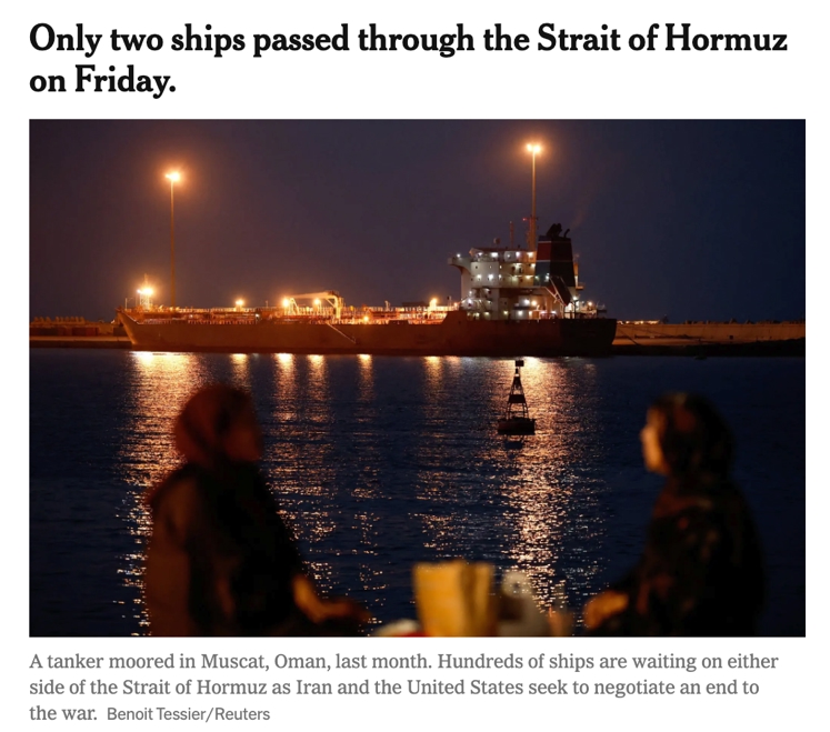 如果说媒体和专家的判断还带有观察成分,那么霍尔木兹海峡的现实情况,则给出了更直接的参照。