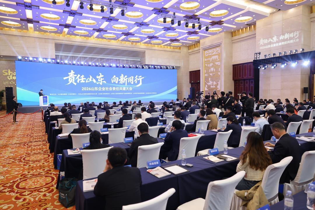 4月13日下午,以“责任山东 向新同行”为主题的2026山东企业社会责任共建大会在山东大厦金色大厅举行。大会聚焦企业社会责任履行与ESG发展理念,汇聚政企学研媒多方智慧,为山东企业高质量发展树立标准、提供指引。