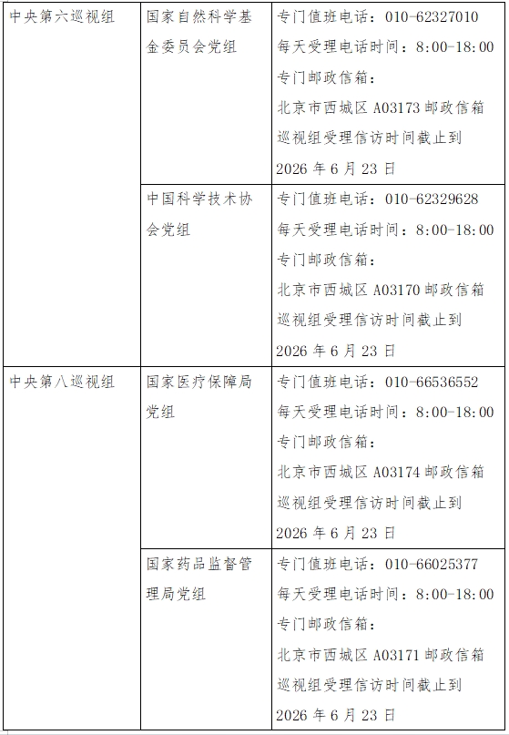 已进驻中央巡视组联络方式: