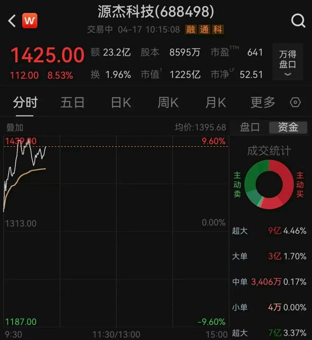4月17日,源杰科技持续走强,盘中股价突破1410元,超越贵州茅台成为A股新“股王”。公开资料显示,源杰科技是一家从半导体晶体生长,晶圆工艺,芯片测试与封装全部开发完毕,并形成工业化规模生产的高科技企业。