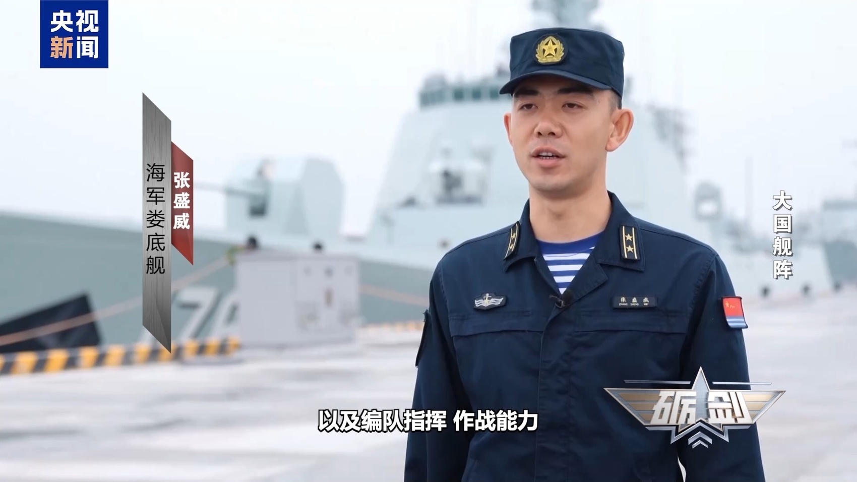 海军娄底舰 张盛威:我们新型舰艇采取了新体系、新架构,无论从防空反导、对海打击,以及编队指挥、作战能力,都得到进一步增强和提高。它既是一把攻击利剑,又是一枚防守利盾。它既能对敌实现远程的突击和打击,又能在防御之中守护我舰艇编队安全。