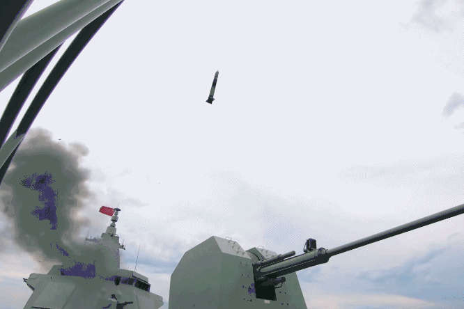 一声令下,导弹如穿云利剑直奔目标,五发五中,向世人展示了“万吨大驱”的作战能力。