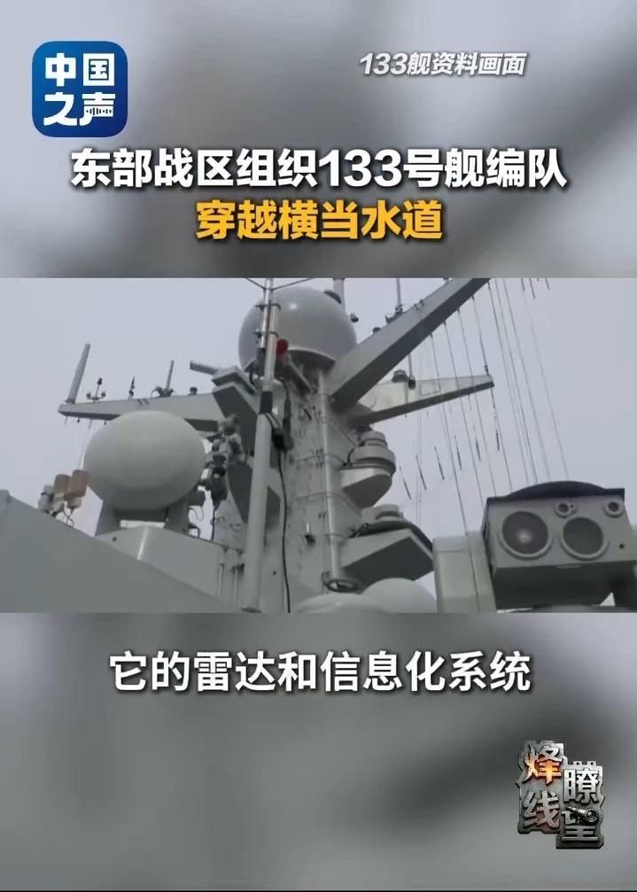 宋晓军:使用“东部战区”这个词非常重要。因为我们知道2024年中国军队的新编制就出现了,原来的战略支援部队作为一个军种,改成了4个兵种,其中有信息支援部队、网络空间部队、航天部队和联勤保障部队。这4个兵种要嵌入战区,而且要和战区的海军进行紧密配合。尤其是在远海,比如航天部队会给133舰提供航天支持,支援部队会提供信息支持,同时网络空间部队也会提供网络支援,联勤保障部队也会提供后勤保障。同时战区的其他兵种,比如火箭军、空军,甚至它出海到远海之前,在近海这一段,陆军也会提供相应支援保障。