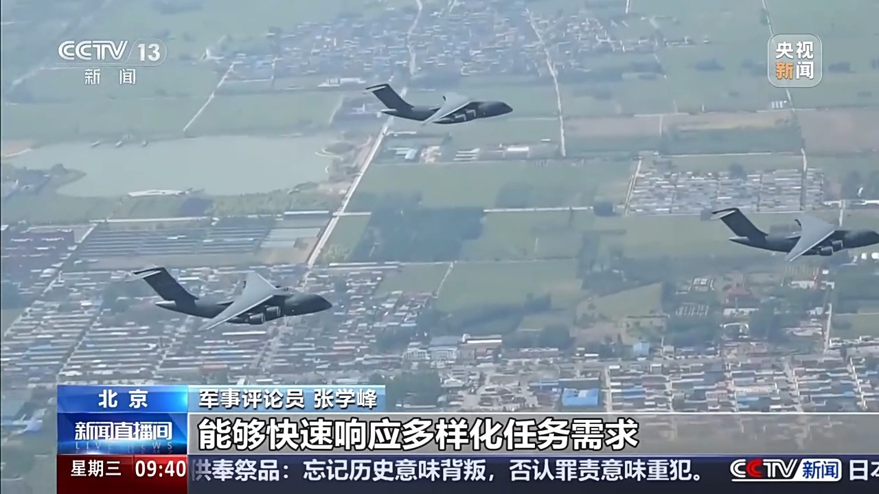 2025年9月3日,在纪念中国人民抗日战争暨世界反法西斯战争胜利80周年阅兵式上,3架运-20A、3架运-20B组成运输机梯队凌空亮相。这是装配国产发动机的运-20B首次公开受阅。飞行过程中,运-20B加速、并线平稳流畅,充分展现出优异的飞行性能。
