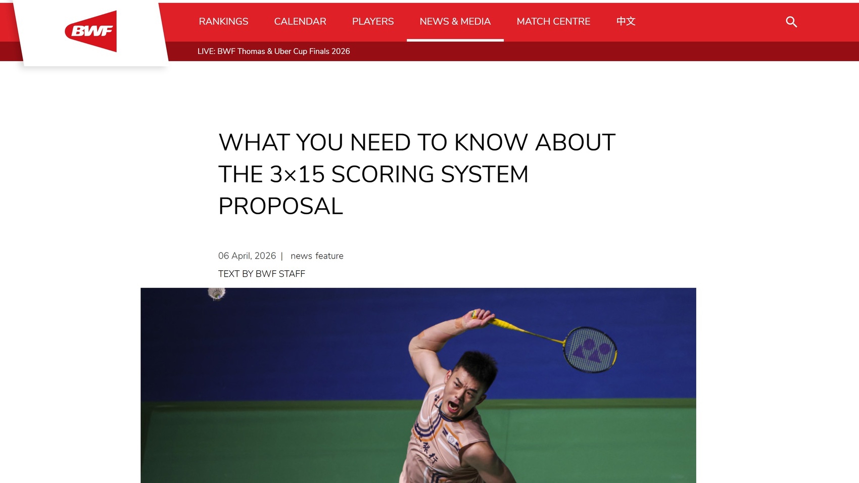 世界羽联在投票前刊文详解15分制(世界羽联官网截图)