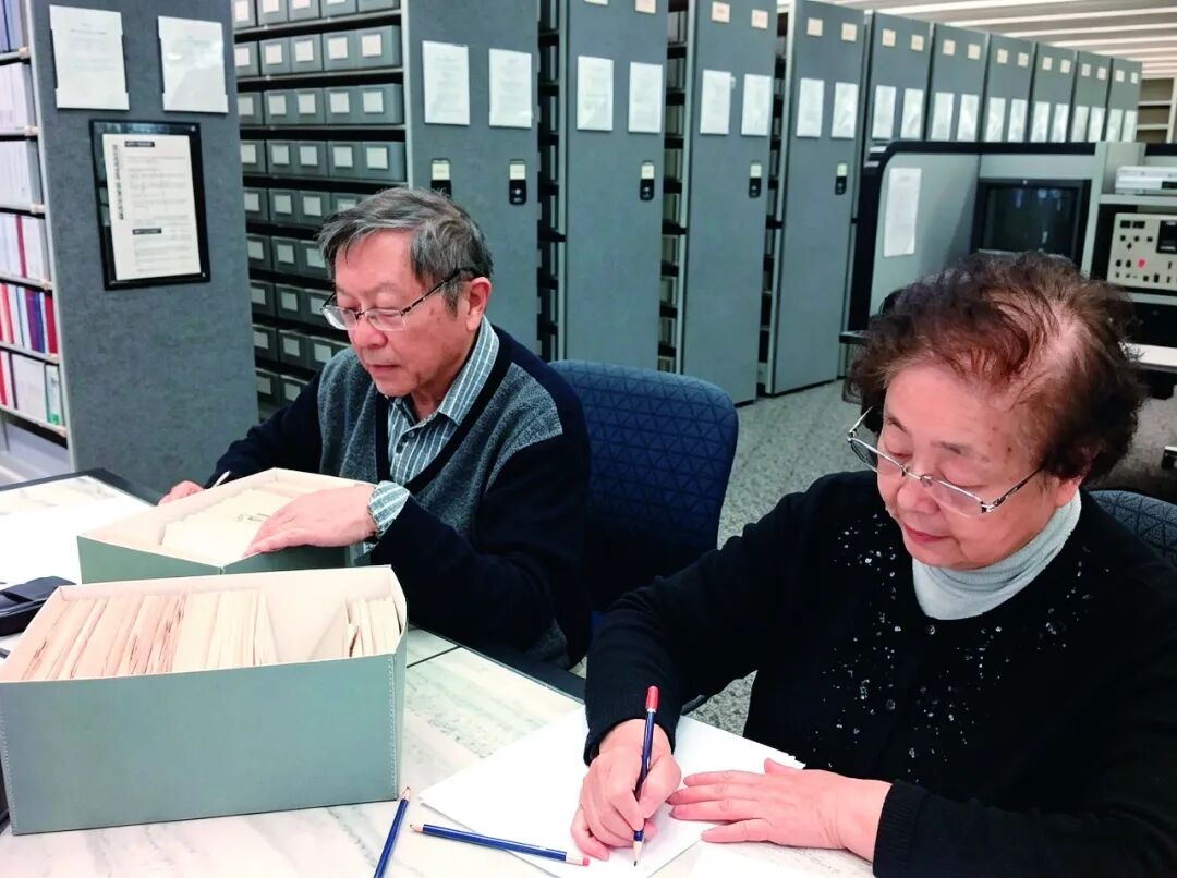 2015年,向隆万(左)与妻子蒋馥在美国国家档案馆查找资料。向隆万供图